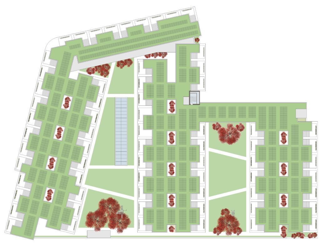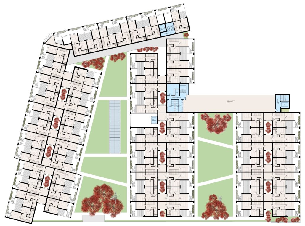 Das Wohnkonzept sieht die Schaffung von 63 Wohnungen mit 3.5 bzw. 4.5 Zimmer vor. Die Wohnungen sind in Holzelementbauweise vorgesehen, um die Gebäudestatik so gering wie möglich zusätzlich zu belasten.